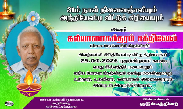 பிரசுரிக்கபட்ட திகதி: 13/04/2026 (திங்கட்கிழமை)
